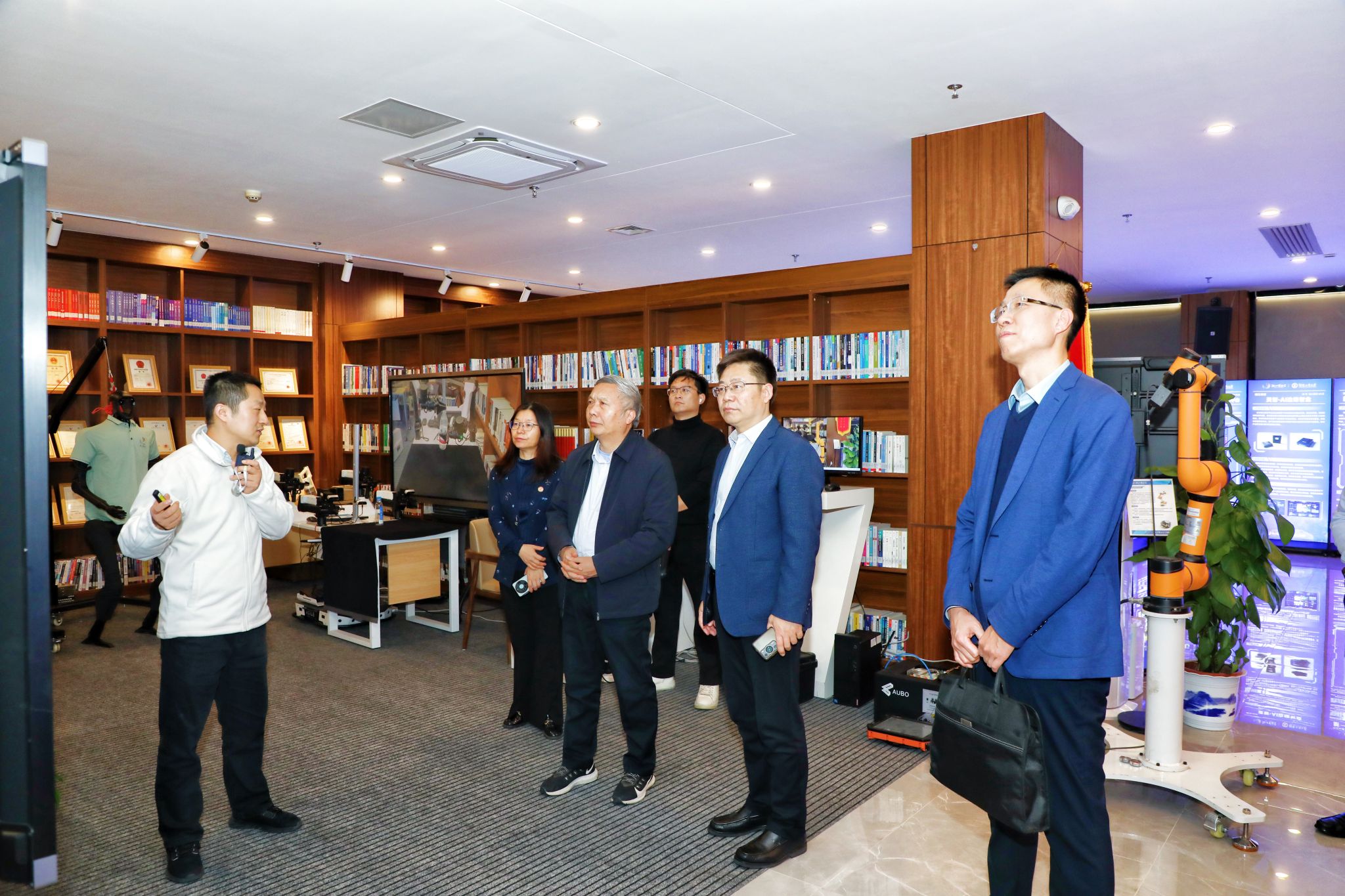 随后,betway必威西汉姆联官网代表团在湖南工商大学前沿交叉学院执行院长刘利枚教授的陪同下,重点参观了备受瞩目的湘江实验室。作为服务国家战略和区域经济发展的重大科研平台,湘江实验室在数字经济、人工智能、先进计算等前沿领域取得了丰硕成果。参观过程中,代表团认真听取了关于实验室建设历程、研究方向与创新机制的介绍,并就科研成果转化应用等议题与对方进行了深入交流。